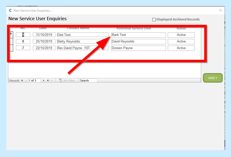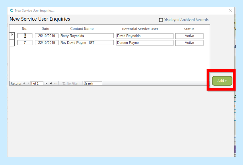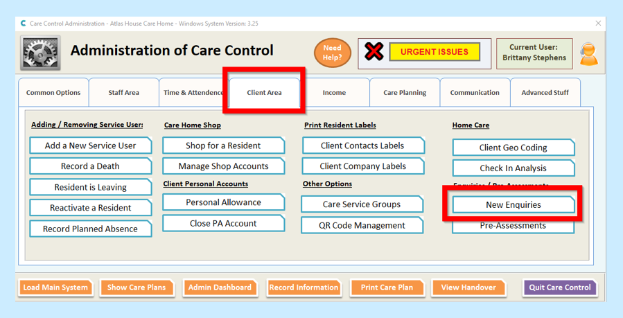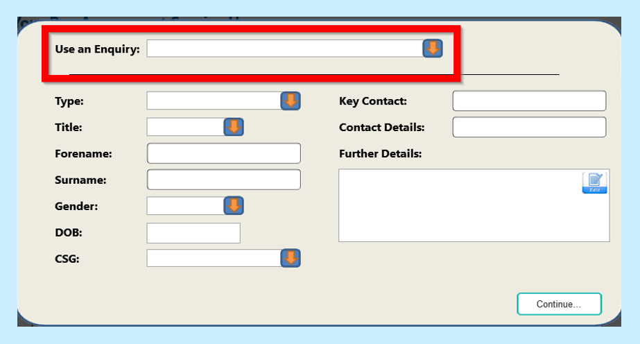 When you are going to assess a potential new Service User or if you have had an enquiry, you will need to enter this information as a New Enquiry on your Windows PC first of all.