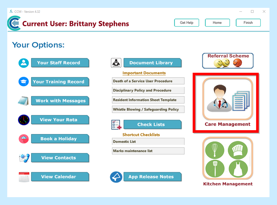Once you have selected Yes to Process, when you go onto Care Control you will see your Service User. You will then need to go onto their Care Plan and enter information as you normally would do.