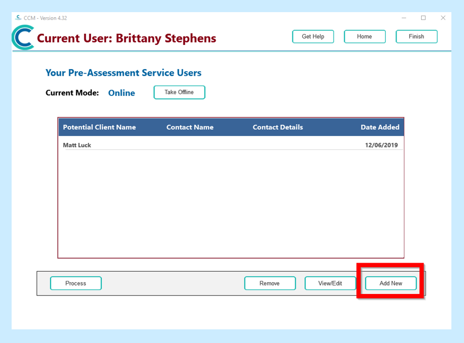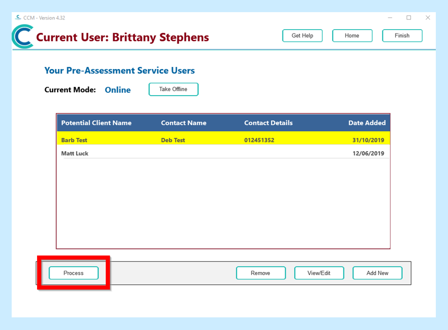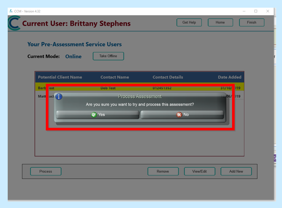 You will need to go into Your Pre-Assessment Service Users and select the client and then Process.