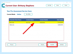 You can then select your potential client. This will then go yellow and you will be able to select View/Edit.