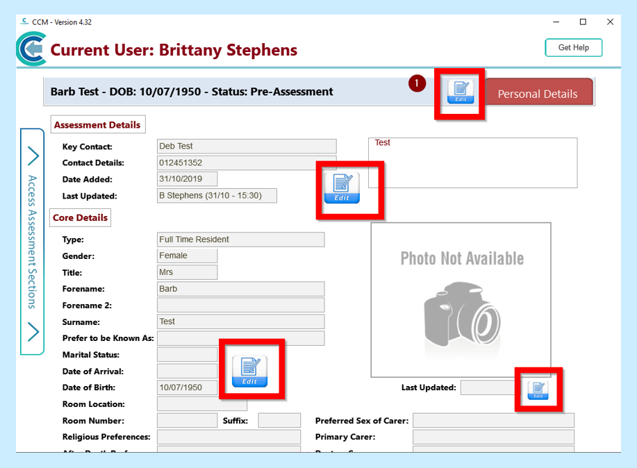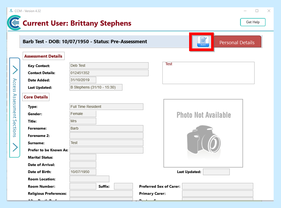 You will then see their Pre-Assessment Personal Details page. Select the Edit button to be able to edit and fill in information.