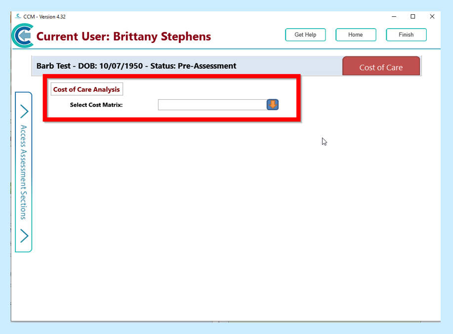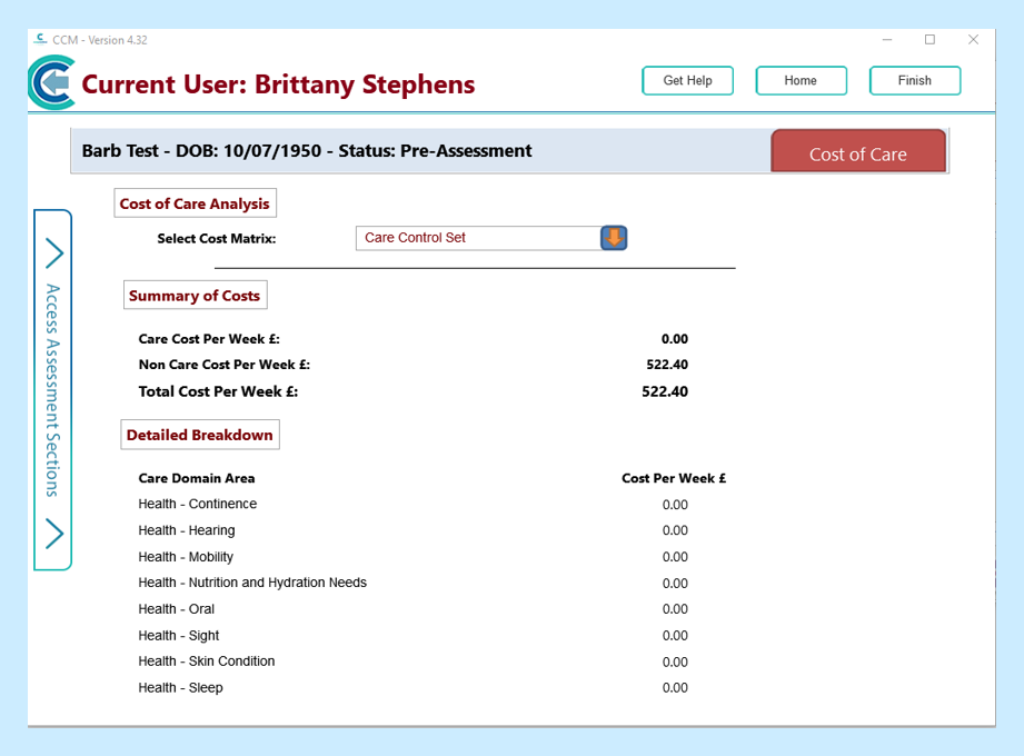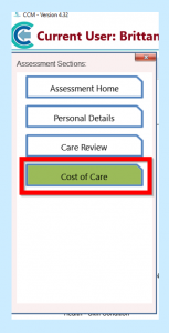 You can also select the Access Assessment Options tab and choose Cost of Care (these costs are set in your Dependency/Cost of Care settings). This is designed to help you with the cost of the Service User in your care.
