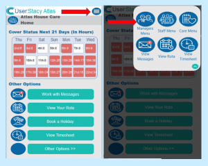 To find the new menu, first sign into Care Control Pocket and navigate to the Staff Menu.