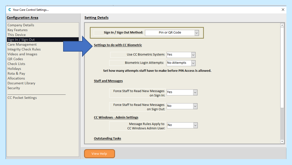 Care Control Windows/Admin Centre/Advanced Stuff/System Settings/Sign In/Sign Out: