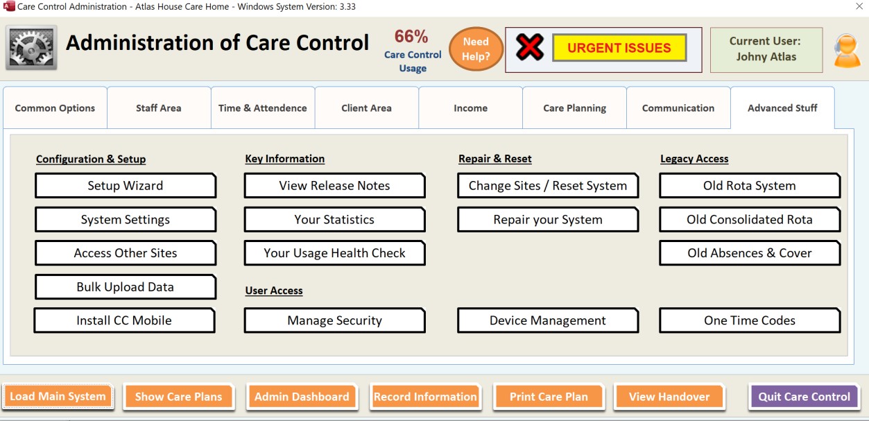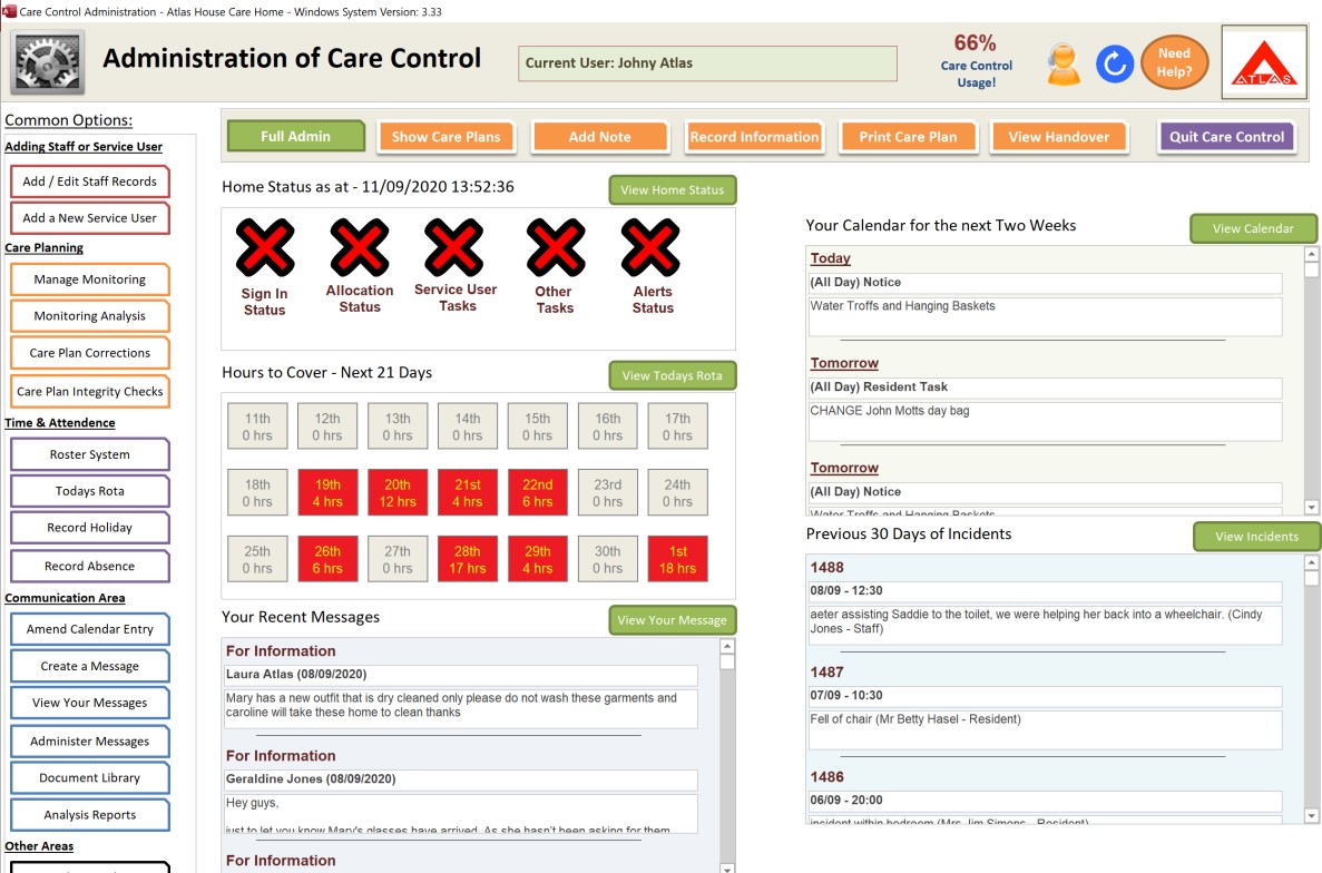 On both the Admin Dashboard and Admin Main Screen, we have brought forward the Health Check Usage Inidicator. This is a useful tool that provides insight into how well you are using Care Control: –