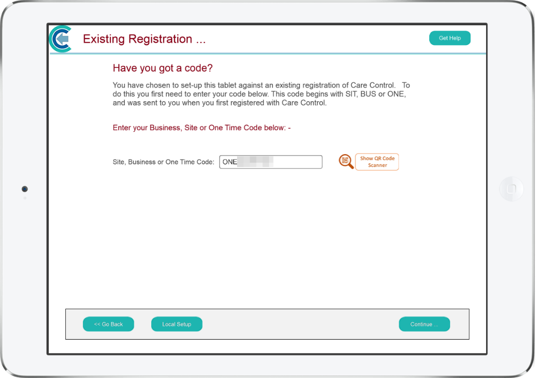 Complete the registration and your copy of CC Mobile will be linked to the correct site.