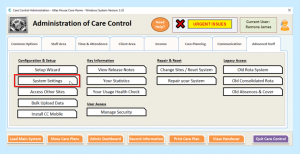 To change your PC to a staff PC so that people without Administration rights can access it firstly you will need to go the Administration of Care Control on Care Control Windows.