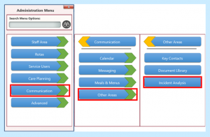 Select Communication, then Other Areas, then Incident Analysis: