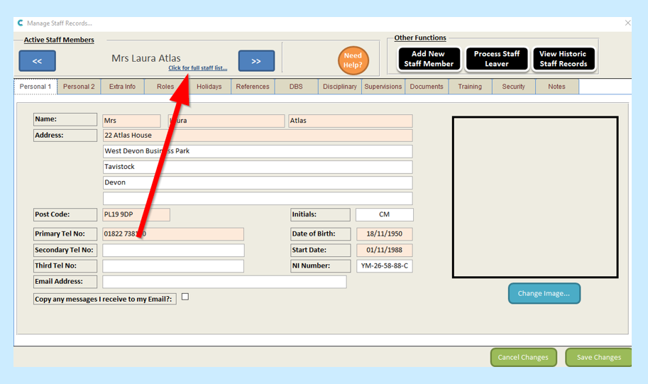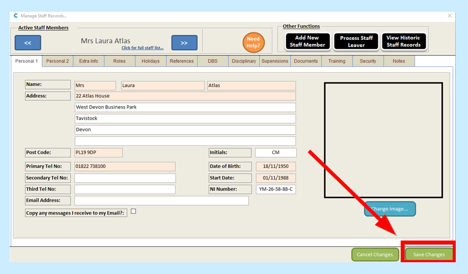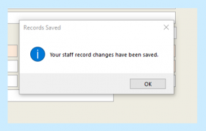 You will then see a message telling you that Your staff record changes have been saved, select OK.