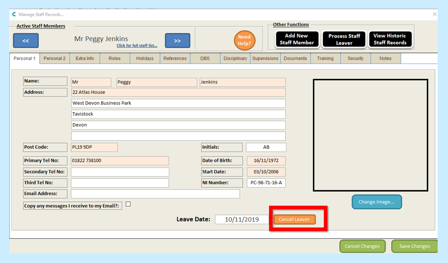 If circumstances change and your member of staff is no longer leaving you can cancel this by selecting Cancel Leaver.