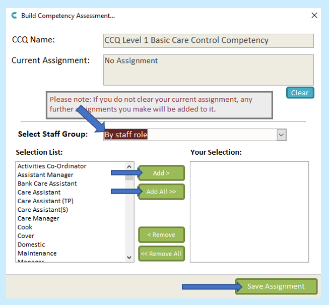 TIP: We recommend assigning By staff category or By staff role as assigning By staff member will mean you need to update each time a member of staff joins or leaves your organisation.