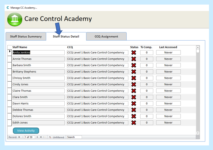 You can also view a matrix of all your staff activity under the tab Staff Status Detail.