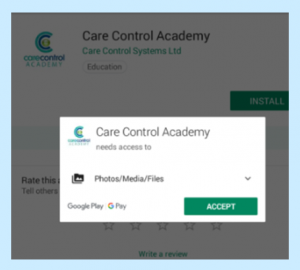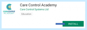 Once it has downloaded, OPEN will appear on the screen. Select this to open Care Control Academy or use the app icon on your device home screen.