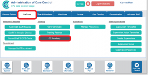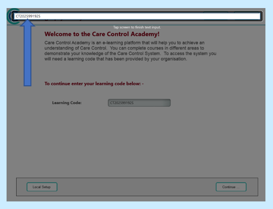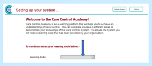 The Learning Code should be provided to staff to allow them to access the Care Control Academy e-learning platform.