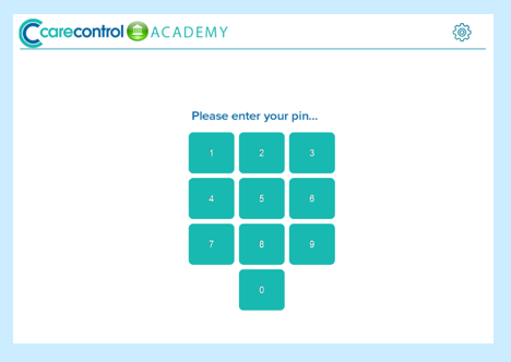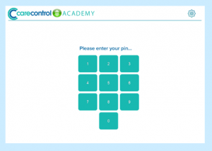 Just enter your PIN number to begin using Care Control Academy – this will be the same PIN number that you use on Care Control.