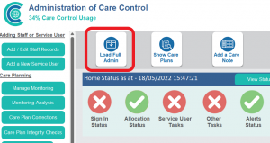 In Care Control Windows, either go to the Admin Dashboard screen and select Full Admin: