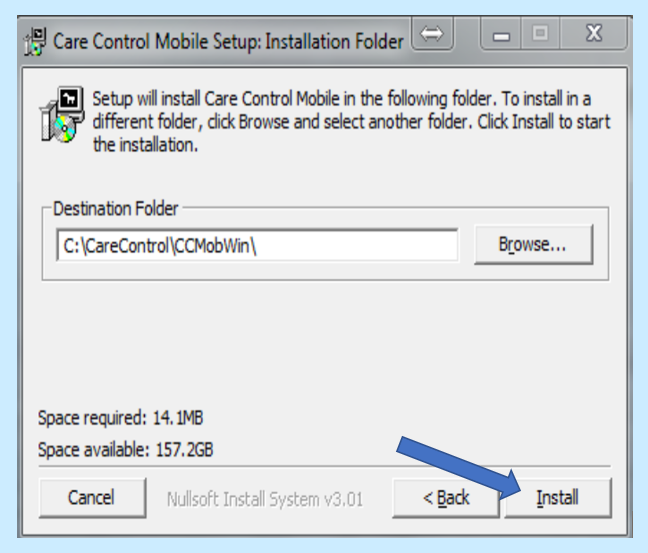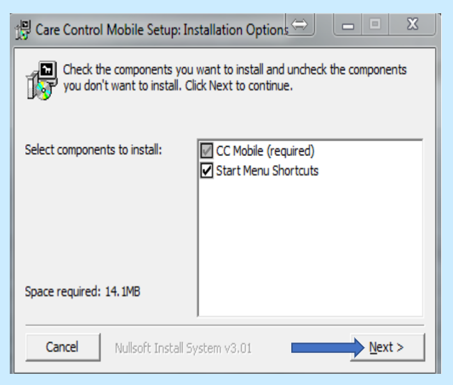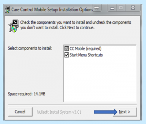Once the download is complete, click on carecontrolmobile to open the installation wizard: