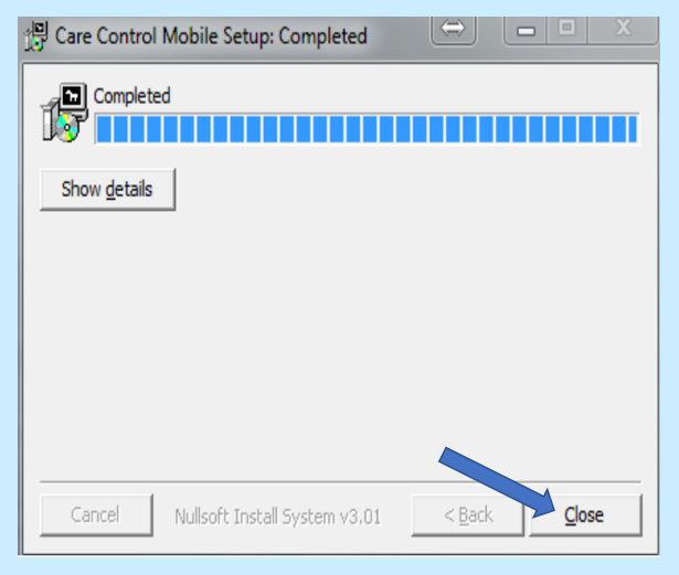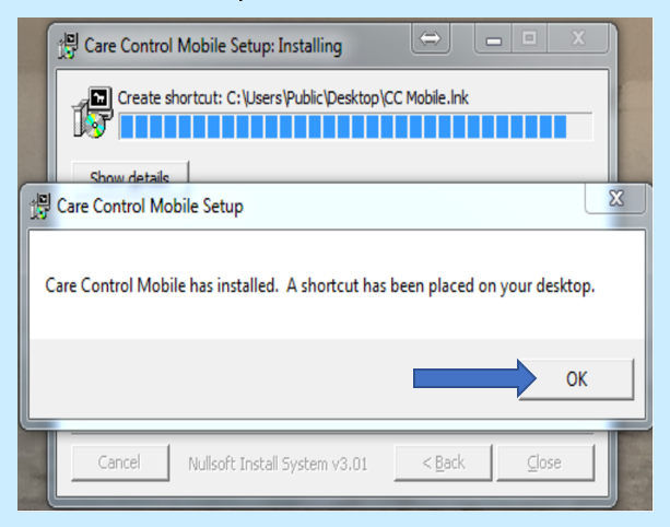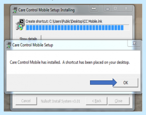 The wizard will now install Care Control Mobile onto your PC. Once complete select OK.