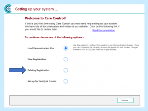 If you select Step 3 – Ready to start?, on the next screen select Existing Registration.