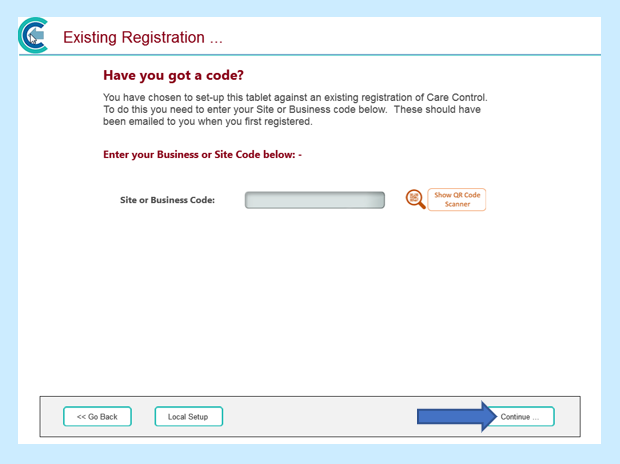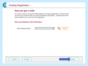Enter your Site Code by selecting the grey text box. This part is case sensitive, so remember to use capital letters.