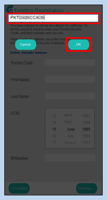 *To register a staff device, you’ll need a Pocket Code (starting PKT). See the above guide to find out how to get this*