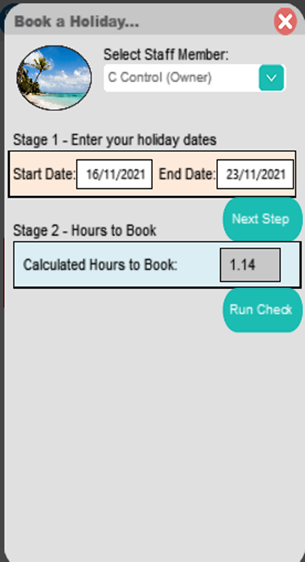 Once you have completed the dates click Next Step. This will then look at the parameters set up by the company and will indicate the likelihood of it being accepted by the manager. You should not assume that your holiday will be authorised until you hear from your manager.