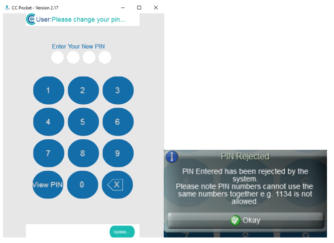 On the next screen enter your new PIN Number and if it matches with someone else, this will come up with a message to indicate that this PIN should not be used. You will then need to use a different number. Should you ever forget your PIN you will need to speak to your manager.