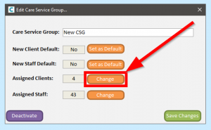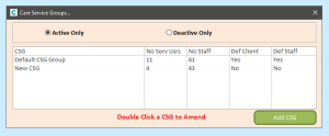 To switch the service user to their new CSG, go to Care Service Groups in the Client Area tab in Full Admin.
