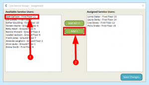 Sometimes you might need to move a service user to another Care Service Group (CSG) due to a room change or moving to another wing of the home. When the service user is moved to a new CSG, they are removed from the previous group they were in (service users can only be in one CSG).