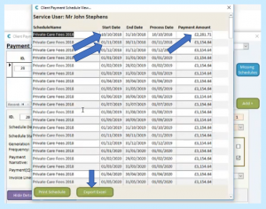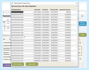 This screen is quite useful, you can export if you wanted to and share it with it with the service users’ families if they wanted to see the detail/what the scheduled payments are going to be.