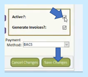 …which will be useful if we’re going to use it for filtering. So this is a Private fee payer, but we’ve also got CHC/NHS payments and Social Services, you can also add other ones to that list if you want to. The Generation Frequency – this is how often is this fee going to be generated (or the invoice associated with this fee going to be generated)? So we click on Change: