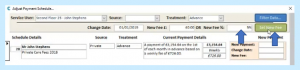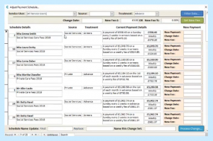 Here we’re going to filter by John Stephens and you can see the active schedule that we’ve got in place and the current payment of £3,154.64. What we’re going to do is we’re going to put a Change Date in here: