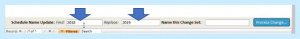 So here we have our Fee Schedule currently called Private Care Fees 2018 and we want it to say, after we process this change, Private Care Fees 2019 and that’s the word replacement that we’re going to use. But also we can name this change set and that’s really important if we want to go back and use it as a Mail Merge a bit later. So here we’re going to say JS Change