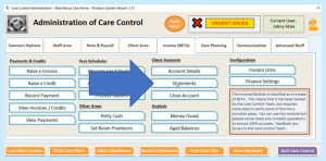 We have added an additional tab onto the Administration page of Care Control called Income and it’s currently flagged as a Beta system.