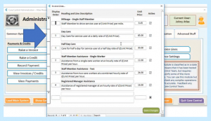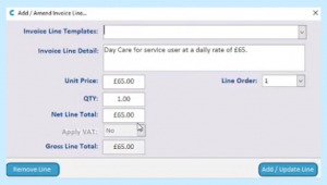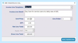So, say this service user John is coming in for Day Care, we can select Day Care as our Invoice Line