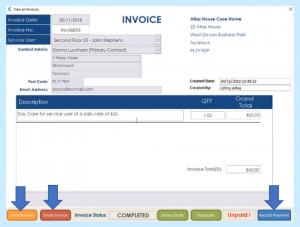 The data can no longer be changed and we can now Record a Payment. Obviously at this stage you may want to print or email the invoice.