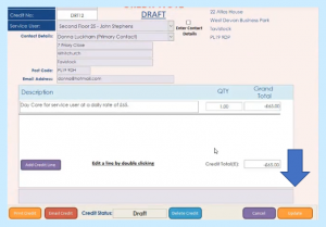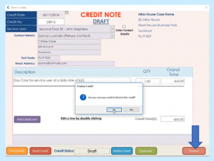 …which will mirror that particular invoice and you can see it’s mirrored against the information. At this stage you can change the narrative if you wanted to add additional information. If we update that credit and at this stage if we were to finalise the credit…